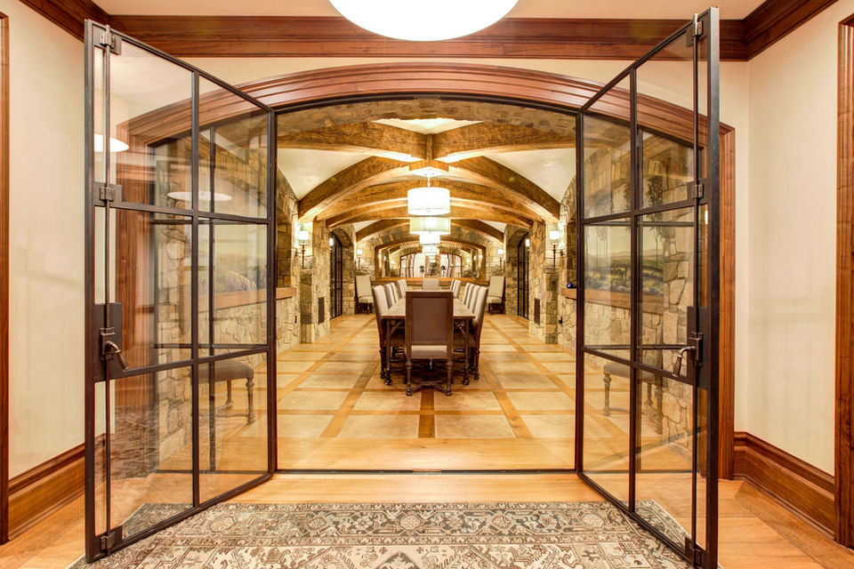 From the hardwood in the great hall that was custom milled in a unique parquet pattern designed by our team to the custom-designed tub hand-carved in Mexico, we make sure all details are never overlooked. In the master bathroom, the stone trim was custom formed to match the bespoke wood trim throughout the estate. The grand walnut helical stairs were also designed by our team to be a focal point upon entry. These are just a few of the small details that makes this house magnificent. Housing four guest suites, a master wing, theater, enclosed sunroom, walnut study, wine cave, and great hall, this three year project was a culmination of many skilled craftsman.